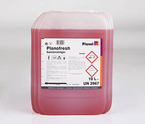 Das Produkt eignet sich ideal für den Einsatz im Bad und WC, an Glasduschkabinen, Fliesen und weiteren säurebeständigen Oberflächen. Intakte, verchromte Oberflächen können ebenfalls schonend gereinigt werden. Planofresh kann sowohl unverdünnt bei starken Verschmutzungen als auch verdünnt für die regelmäßige Unterhaltsreinigung verwendet werden.